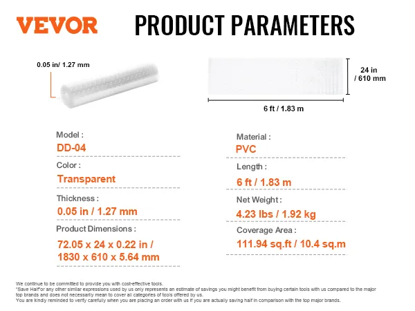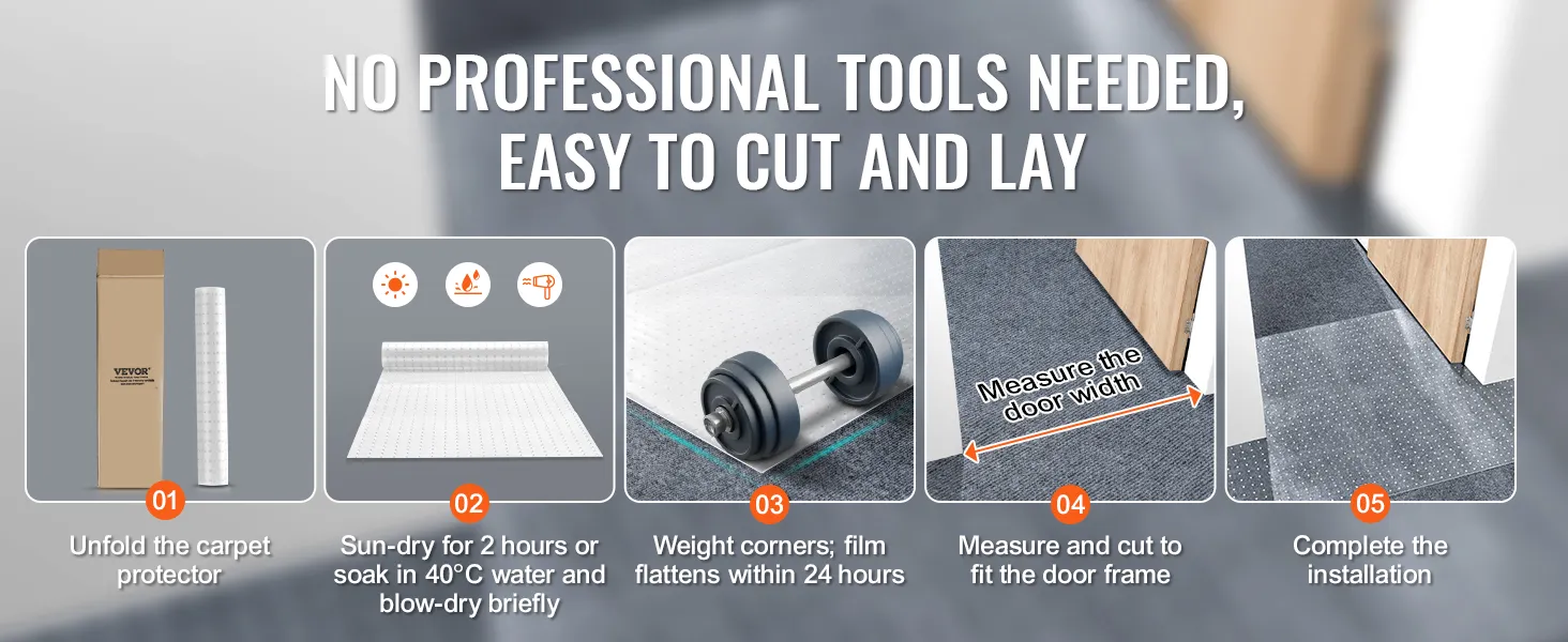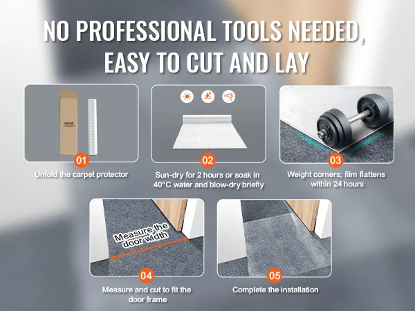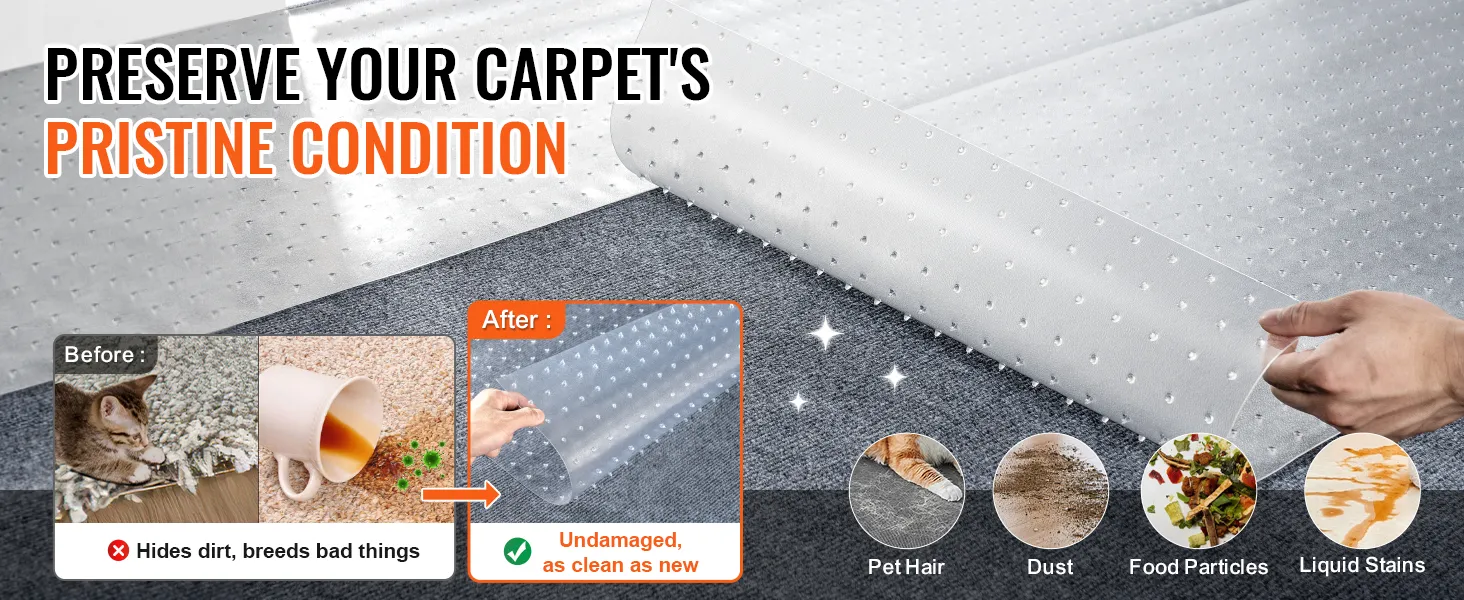 Het merk VEVOR biedt uitgebreide bescherming tegen schade door huisdieren. Of u nu katten of honden hebt, onze beschermer zorgt ervoor dat uw tapijten beschermd blijven tegen krassen en vlekken. De hoogwaardige materialen en het ontwerp van onze beschermer maken het een ideale keuze voor huisdiereigenaren die de schoonheid en levensduur van hun tapijten willen behouden.