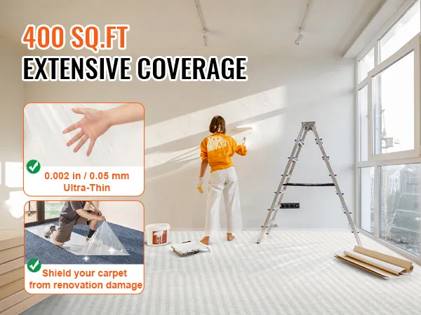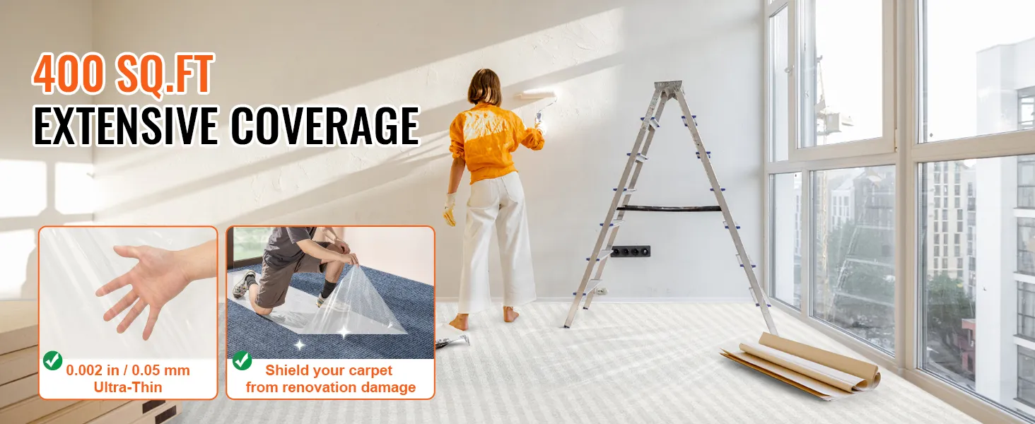 De beste vloer- en oppervlaktebescherming biedt uitstekende bescherming voor uw tapijten. Het beschermt tegen verf, voetafdrukken en krassen. U kunt met gemak tot 400 vierkante voet bedekken. Dit houdt het uiterlijk van uw tapijten als nieuw. Is deze folie bestand tegen de ontberingen van renovatie? Het is perfect voor zowel kleine als grote projecten. Gebruik het om uw vloeren te beschermen tegen vuil en puin. Perfect voor bouwplaatsen. Het schoonmaken na projecten is eenvoudig en snel. En het zorgt ervoor dat uw tapijten schoon en onbeschadigd blijven.