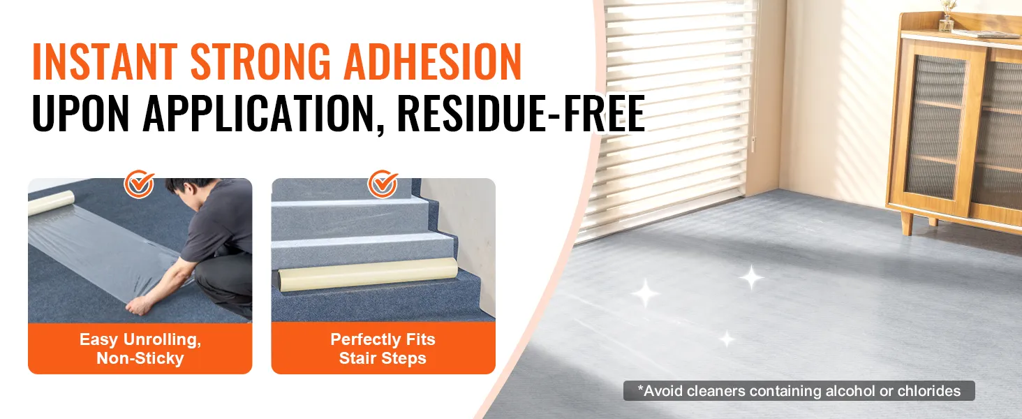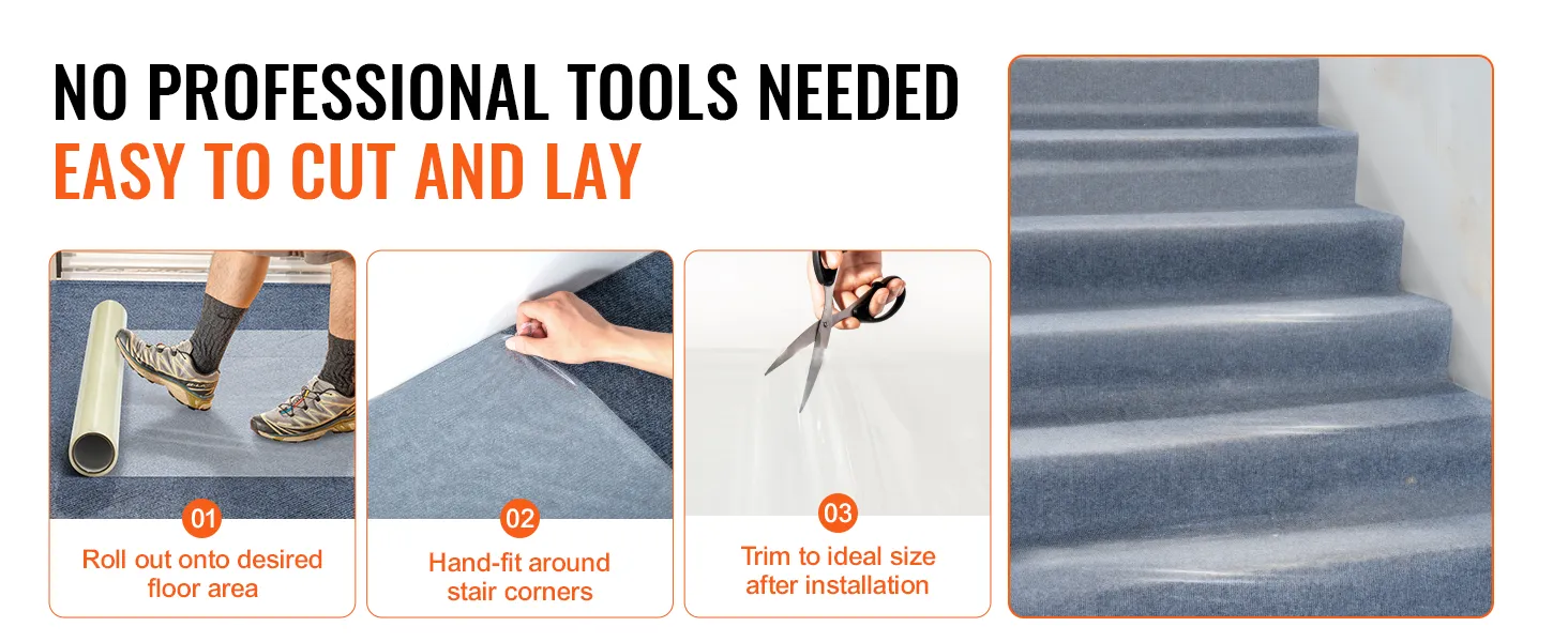 Moeiteloze installatie van VEVOR-tapijtbeschermingsfolie, ideaal voor solo-decorateurs