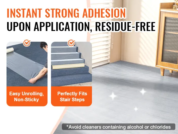 Het heeft een sterke grip en plakt direct na het aanbrengen. U kunt het eenvoudig verwijderen zonder resten achter te laten. Deze film blijft op zijn plaats tijdens renovaties en beschermt tegen voetverkeer en intensief gebruik. Het is perfect voor drukke bouwplaatsen en woningrenovaties. De stevige pasvorm zorgt ervoor dat uw vloeren schoon en beschermd blijven tijdens woningrenovaties. U kunt dit snel en eenvoudig verwijderen zodra uw project is voltooid.