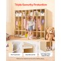 Eenvoudige montage en anti-kantelvoorziening: Deze kledingkast wordt geleverd met een gedetailleerde handleiding en alle benodigde onderdelen voor een snelle montage. Hij is voorzien van een anti-kantelvoorziening voor een veilige wandmontage, waardoor hij niet omvalt en een veilige omgeving voor kinderen wordt gegarandeerd.