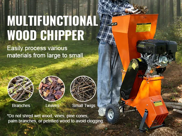 Efficiënte tuinversnipperaar: de VEVOR-houtversnipperaar heeft een boventrechter van 42,5 x 36 x 66,5 cm / 16,7 x 14,1 x 26,1 inch en een grote zijtrechter met een diameter van 17 cm (6,7 inch) met een maximale snijgrootte van 49,5 mm (2 inch). ). Hij verwerkt 80% van de takken, tuinafval, bladeren en houtsnippers, waardoor ruimte in de tuin wordt bespaard of afval wordt omgezet in mulch, kunstmest of compost.