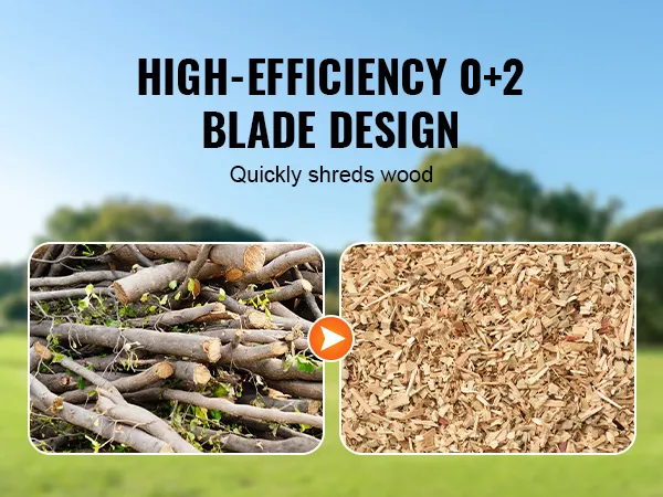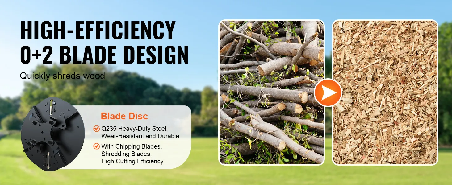 Hoge snijprestaties: het roterende 0+2-mesontwerp zorgt voor hoge snijprestaties bij zowel hakken als versnipperen, waardoor de werktijd wordt verkort. Het stalen Q235-lemmet is robuust en duurzaam.