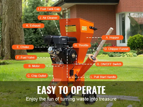 Duurzame constructie: deze houtversnipperaar is gemaakt van hoogwaardig staal en gecoat met een roestbestendige afwerking. Het is geschikt voor gebruik buitenshuis en is een betrouwbare partner voor landschapsverfraaiing.