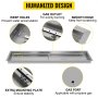 VEVOR Fill-in Fire Pit Pan Burner Natural Gas Fire Pit Burner 50.5x16.5 Inch Fire Pit Pan 15.8 LBS Stainless Steel Fill In Pan Linear Fire Pit Pan Metal Square Burner Heater