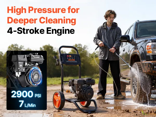 • Geschikt voor dagelijkse reiniging: Deze benzine-hogedrukreiniger levert een druk van 200 bar (2900 PSI) en een debiet van 7 l/min om modder, mos en hardnekkige aanslag van gangbare buitenoppervlakken te verwijderen, terwijl hij de efficiëntie verhoogt en tijd en moeite bespaart.