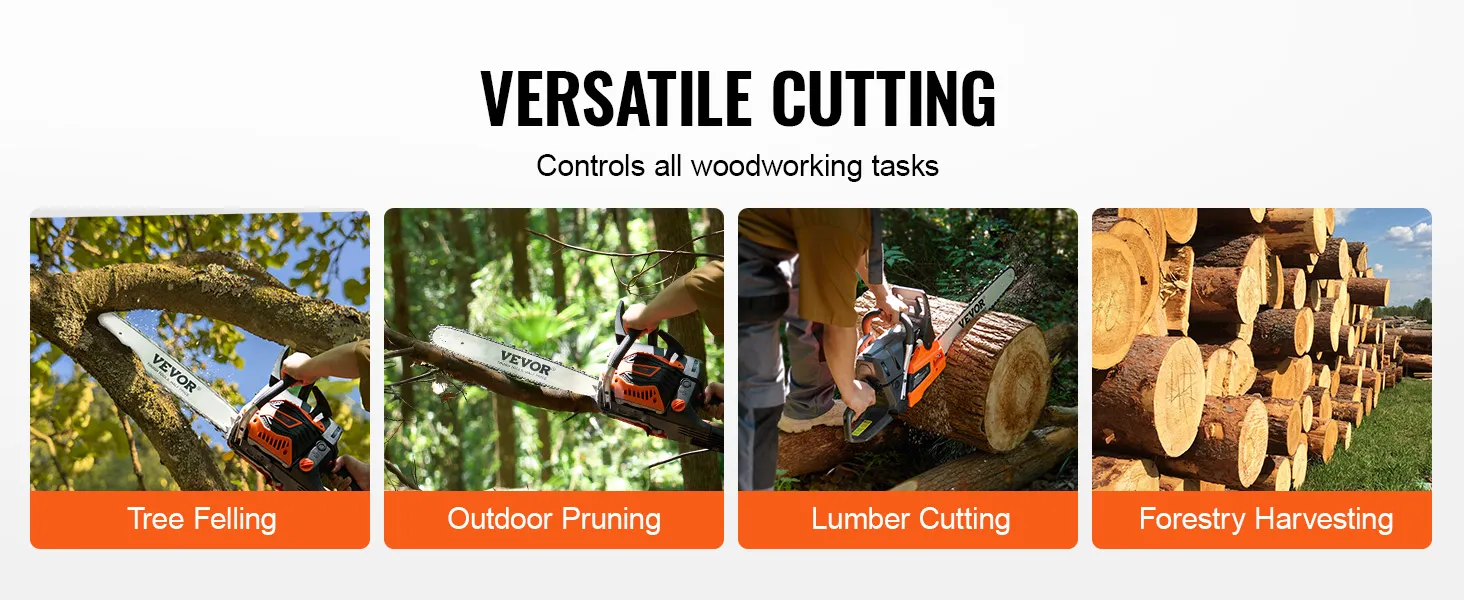 Of u nu bomen velt, snoeit of hout zaagt, deze draagbare gaskettingzaag doet het allemaal met gemak. Het is uw hulpmiddel voor diverse buitenwerkzaamheden.