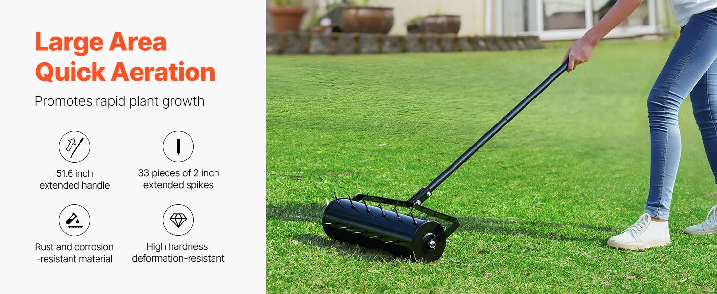 Rust-Resistant and Breakage-Proof: The high-strength metal spikes of this lawn aerator easily penetrate soil and are reinforced to avoid breakage. Coated with a rust-resistant powder, they’re durable in both wet and dry conditions, providing long-lasting, reliable performance.