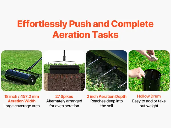 This manual rolling aerator lawn loosens and aerates the soil, promoting deep, healthy roots and lush, vibrant grass. It improves soil structure and creates the ideal growing environment for enhanced plant vitality.