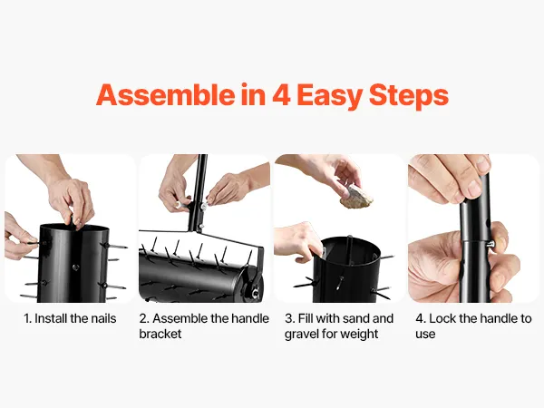 Our manual lawn aerator comes with a full set of installation tools and an instruction manual, allowing for easy assembly following the step-by-step guide.