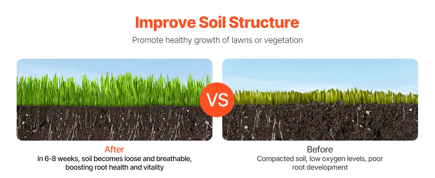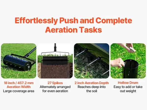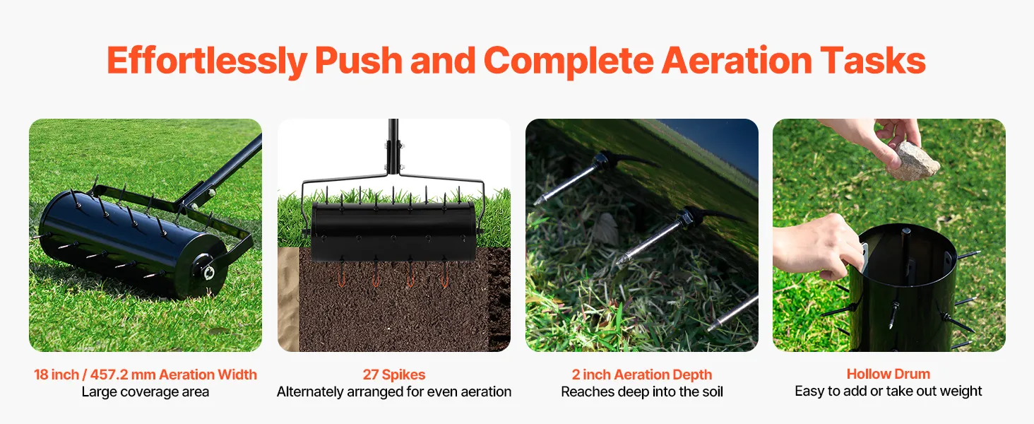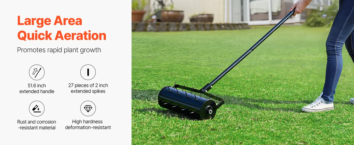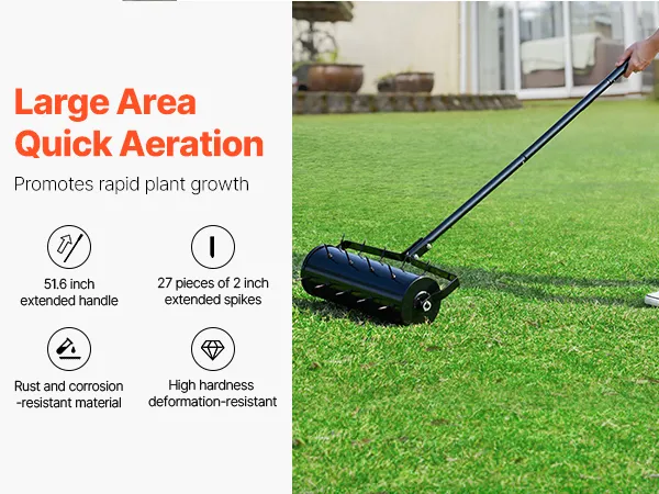 This manual rolling aerator lawn loosens and aerates the soil, promoting deep, healthy roots and lush, vibrant grass. It improves soil structure and creates the ideal growing environment for enhanced plant vitality.