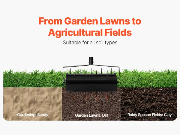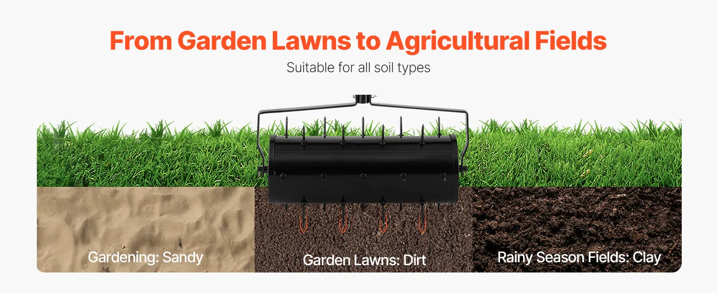 This rolling lawn aerator is suitable for various soil types. Whether for home gardening or large-scale farming, it provides an ideal solution for improving soil structure.