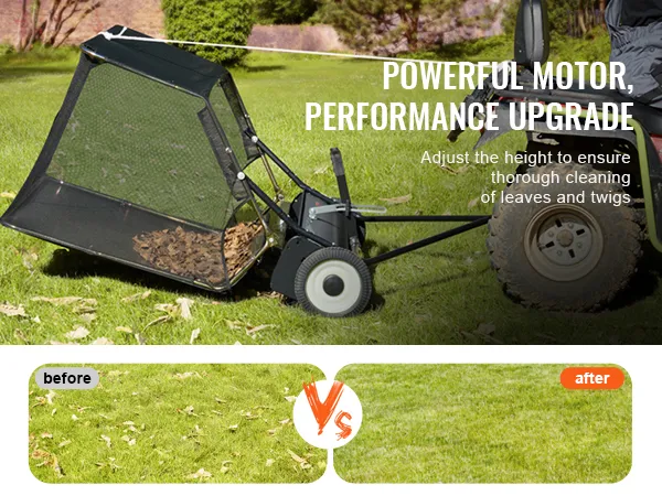 Effortless Sweeping: Attach the grass sweeper to your lawn tractor and let its powerful rotating brush do the work. It quickly picks up leaves, pine needles, small branches, and other dry debris, making lawn maintenance easy and efficient.