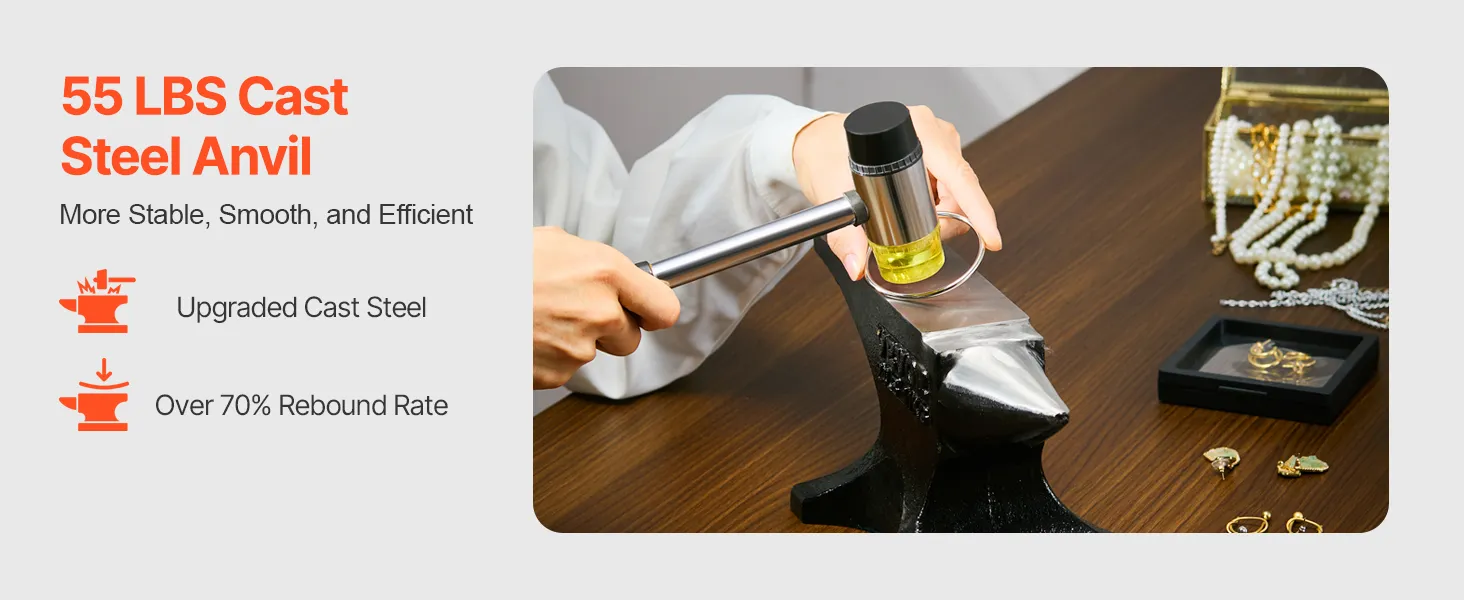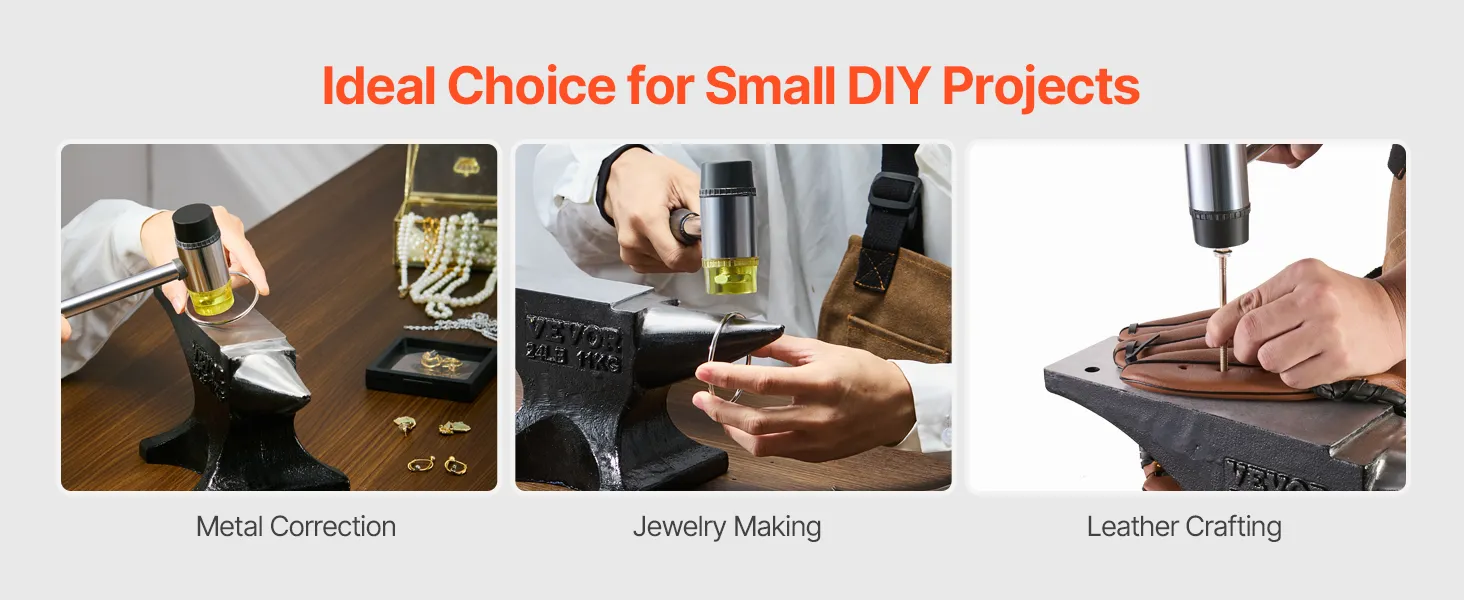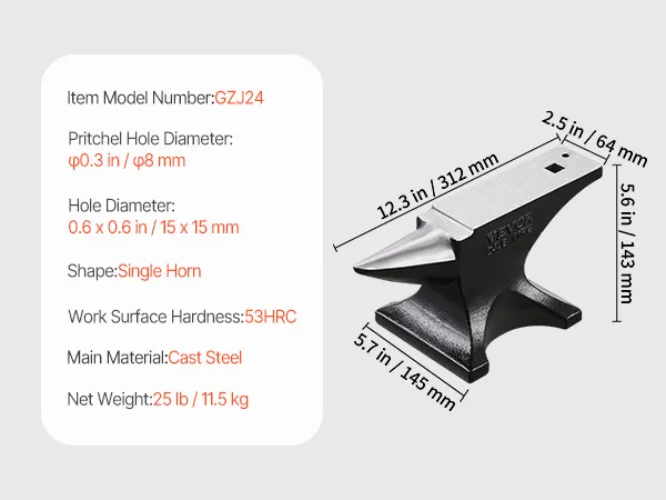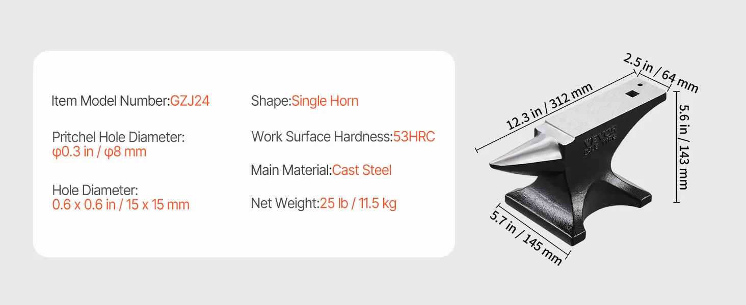 Ideale keuze voor kleine doe-het-zelfprojecten: Met een gewicht van 11,5 kg (25 lbs) en een werkoppervlak van 312 x 64 mm (12,3 x 2,5 inch) is dit smidsaambeeld ideaal voor fijne metaalbewerkings- en knutselprojecten. Het biedt een stabiel werkoppervlak voor het nauwkeurig en gemakkelijk uitvoeren van delicate taken.