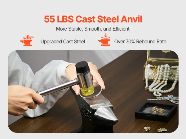 Duurzaam en stevig: dit aambeeld met één hoorn is gemaakt van gegoten staal, is gebouwd om lang mee te gaan en heeft een uitstekende weerstand tegen beschadiging en vervorming, waardoor langdurig gebruik wordt gegarandeerd. Het oppervlak ondergaat een warmtebehandelingsproces bij 800°C, waardoor een hardheid van 50 HRC wordt bereikt, waardoor de slagvastheid en de anti-corrosie worden verbeterd.
