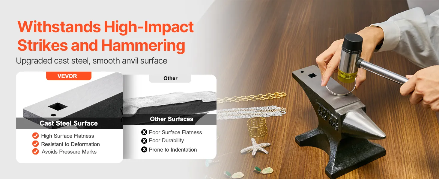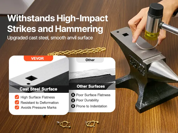 Verbeterd ontwerp: ons ronde hoornaambeeld is voorzien van een snijtafel die speciaal is ontworpen voor snijtaken en voorkomt de vorming van deuken op andere gebieden. Het dikke basisontwerp vermindert beweging en vervorming tijdens de verwerking en verbetert de algehele stabiliteit.