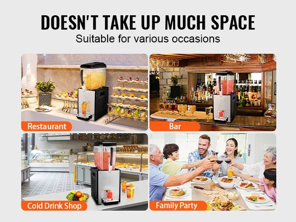 Wide Application: This beverage machine is suitable for chain restaurants, convenience stores, hotels, family gatherings, etc., accommodating soy milk, milkshakes, fruit juice, cocktails, yogurt, coffee, and other types of beverages. We also provide a set of food-grade rubber sealing rings and Vaseline to protect the rubber, extending the machine's lifespan.