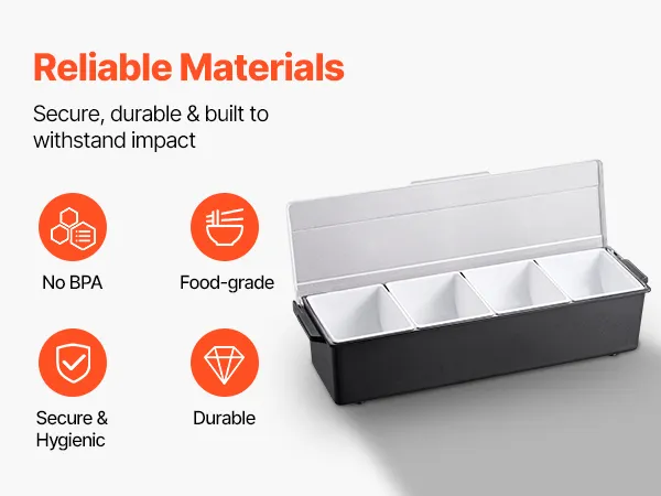 Secure & Durable Materials: Made from food-safe materials with no BPA, our ice cooled condiment serving container is built to last, impact-proof, and entirely secure for direct food contact, making it reliable for daily use