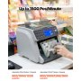 Efficiënt bankbiljetten tellen: De geldtelmachine is uitgerust met twee CIS-beeldsensoren en scant beide zijden van elk bankbiljet om de waarde te bepalen en gemengde coupures te tellen. Handmatig sorteren is niet nodig. U hoeft alleen de bankbiljetten in te voeren en de machine berekent de totale hoeveelheid en waarde.