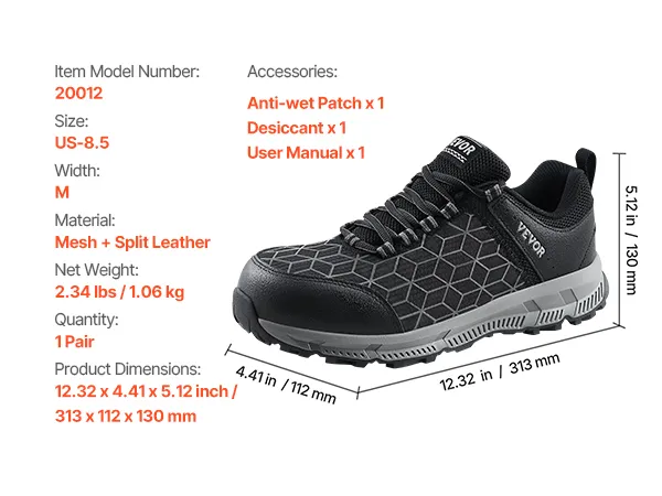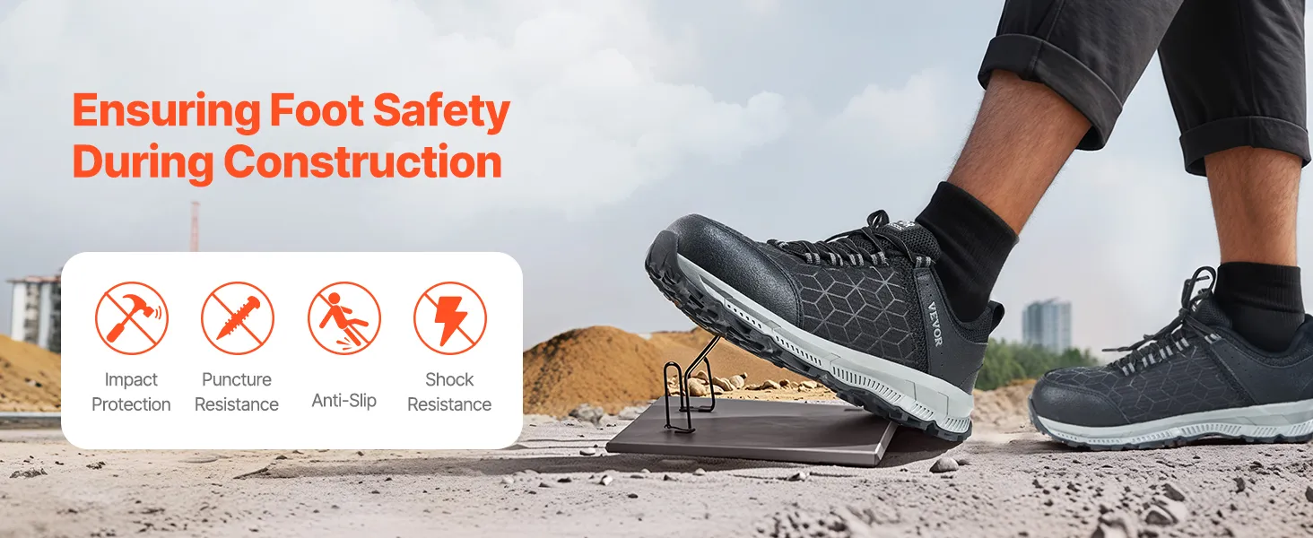 LICHTER GEWICHT: Vergeleken met schoenen met stalen neus, gebruiken onze herensneakers met stalen neus een aluminiumlegering voor de neus, waardoor ze 26% lichter zijn. Het ademende bovenwerk van mesh voorkomt ongemak door zweetvoeten, terwijl de zachte rubberen zool voor extra comfort zorgt. Deze schoenen zijn perfect voor bouwvakkers die lange uren moeten staan of lopen op bouwplaatsen.