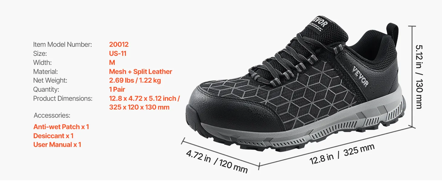 Maatselectie: We bieden maten van 8 tot 13, met zowel M- als W-breedtes beschikbaar. U kunt eenvoudig de juiste maat kiezen op basis van uw voetlengte en -breedte, zodat u de hele dag een comfortabele en veilige pasvorm kunt garanderen.