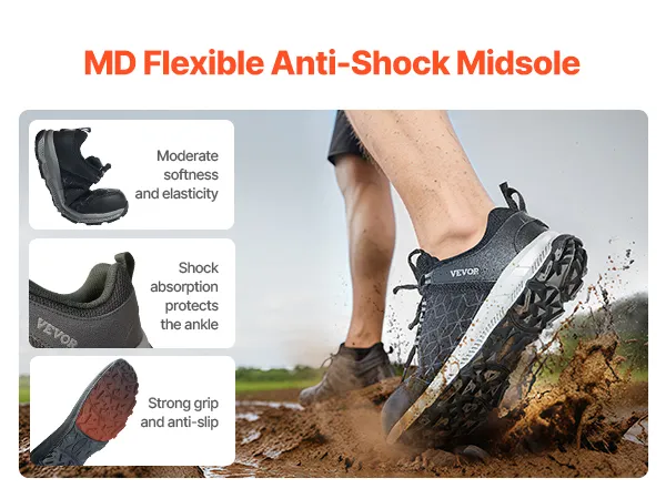 De antislip rubberen zool zorgt voor uitstekende grip op oneffen oppervlakken, terwijl de zachte voering je enkels beschermt en vermoeidheid vermindert.