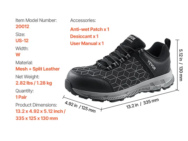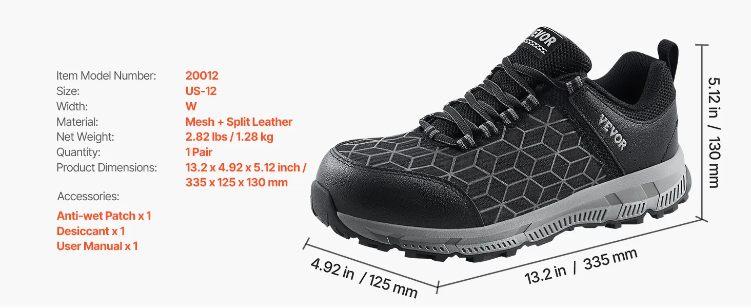 Maatselectie: We bieden maten van 8 tot 13, met zowel M- als W-breedtes beschikbaar. U kunt eenvoudig de juiste maat kiezen op basis van uw voetlengte en -breedte, zodat u de hele dag een comfortabele en veilige pasvorm kunt garanderen.