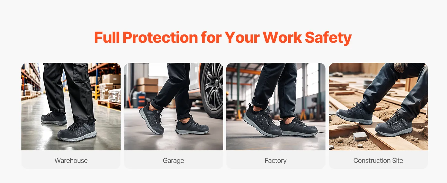 LICHTER GEWICHT: Vergeleken met schoenen met stalen neus gebruiken onze herensneakers een aluminiumlegering voor de neus, waardoor ze 26% lichter zijn. Het ademende bovenwerk van mesh voorkomt ongemak door zweetvoeten, terwijl de zachte rubberen zool voor extra comfort zorgt. Deze schoenen zijn perfect voor bouwvakkers die lange uren moeten staan of lopen op bouwplaatsen.