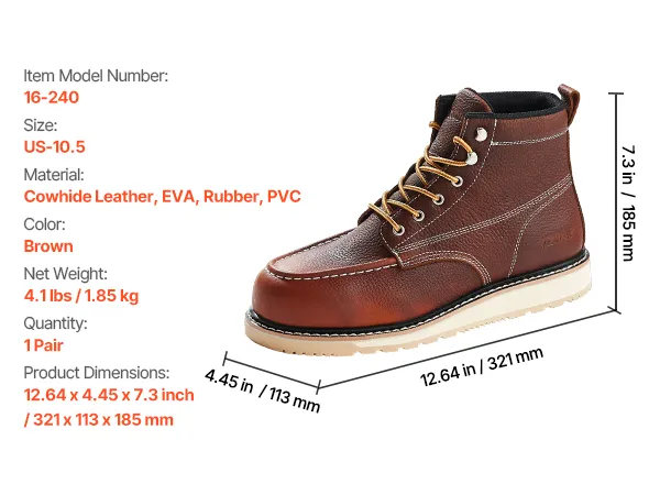 VEVOR Steel Toe Work Boots, UK Size 9.5, Waterproof Moc Toe Work Boots for Men, Slip-Resistant Work Boot, Lightweight and Breathable EVA Rubber Sole Mens Boots for Industry Construction, Brown