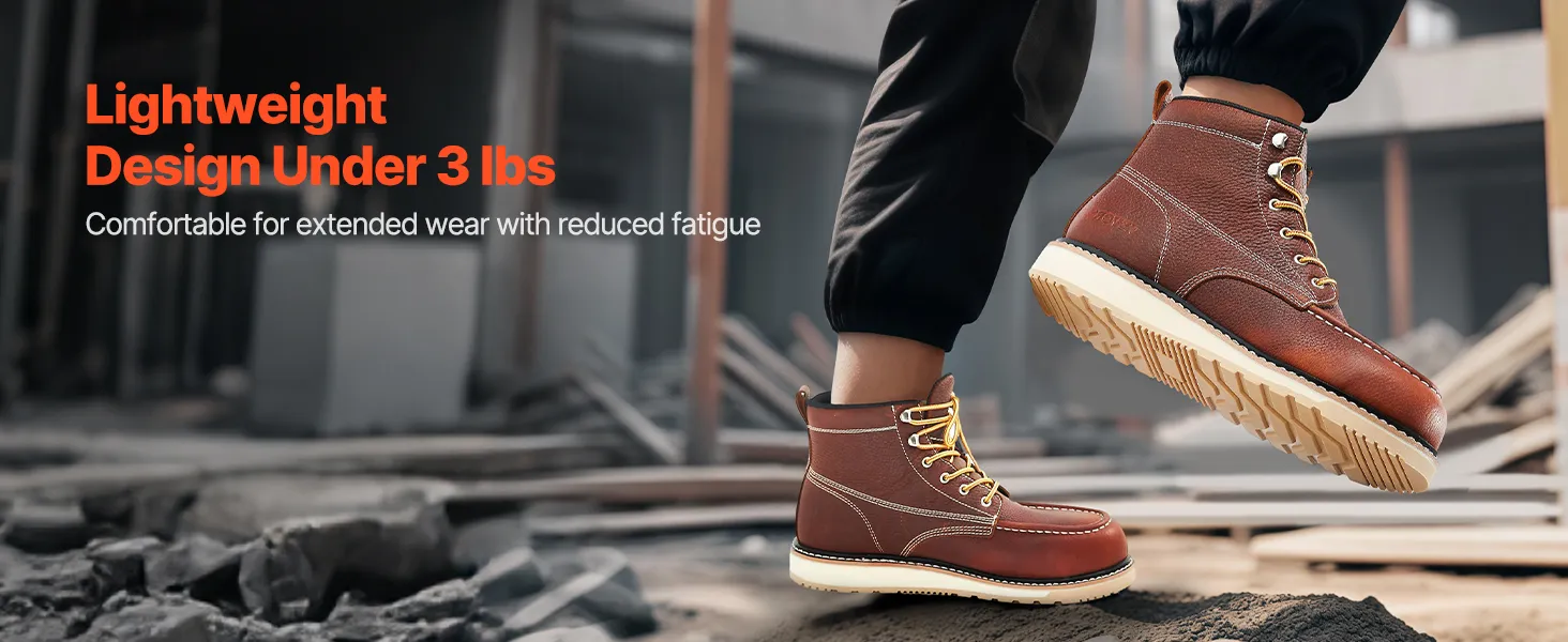 Breathable & Lightweight: These boots feature waterproof leather to keep dryness out while the breathable insoles avoid foot sweat. The soft rubber sole enhances comfort, making them ideal for workers who need to stand or walk for extended periods on construction sites.