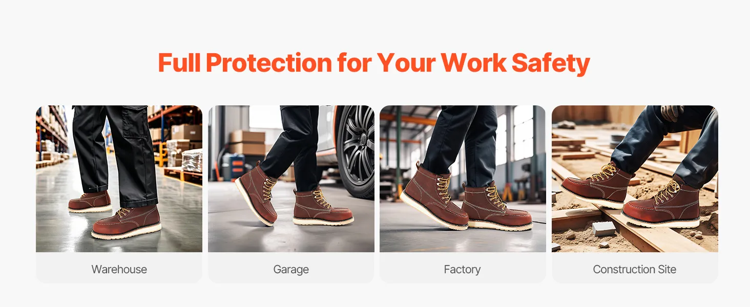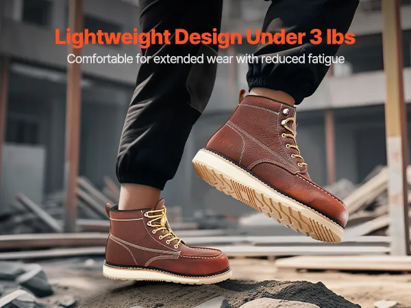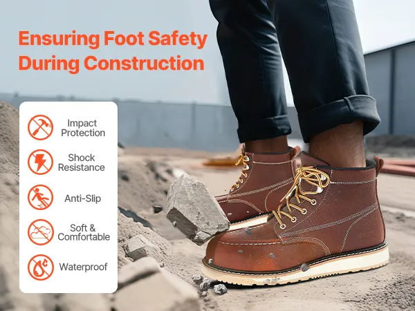 Breathable & Lightweight: These boots feature waterproof leather to keep dryness out while the breathable insoles avoid foot sweat. The soft rubber sole enhances comfort, making them ideal for workers who need to stand or walk for extended periods on construction sites.