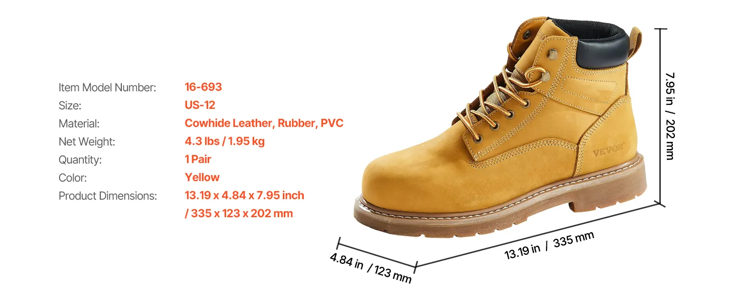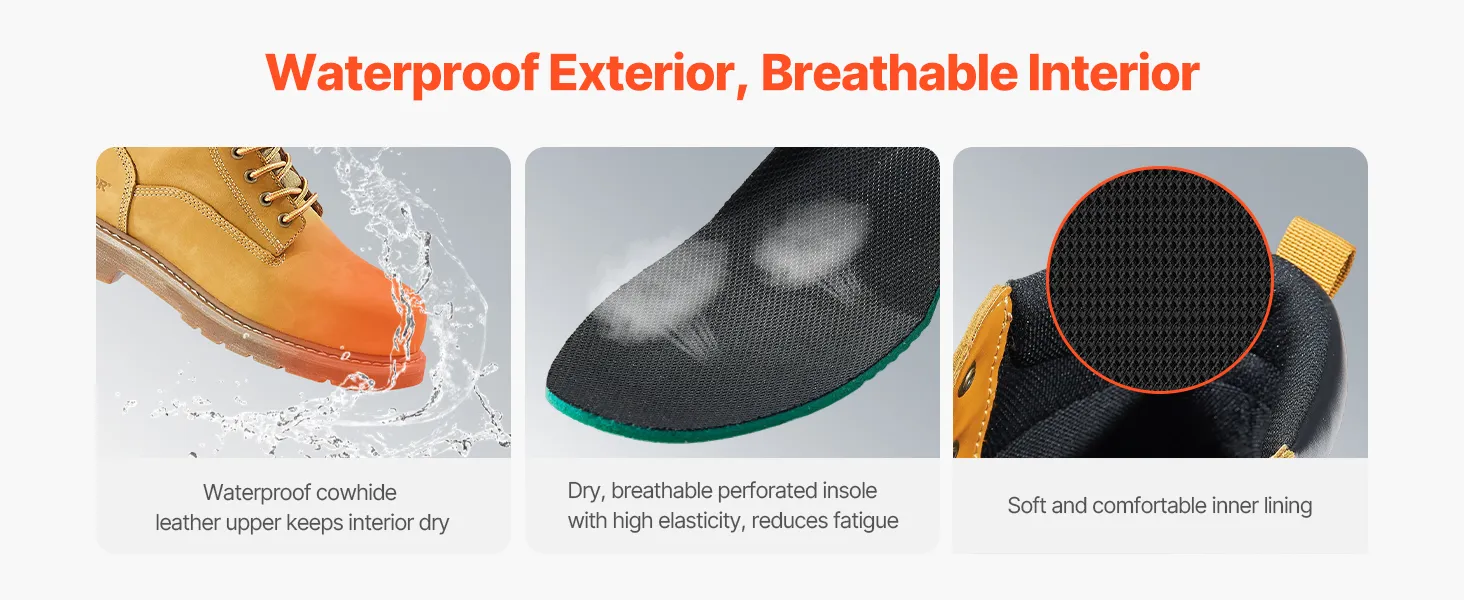 VEVOR Steel Toe Work Boots, UK Size 11, Waterproof Work Boots for Men, Slip-Resistant Work Boot, Lightweight and Breathable Rubber Sole Mens Boots for Industry Construction, Brown Yellow