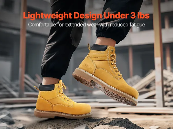 Breathable & Lightweight: These boots feature waterproof leather to keep dryness out while the breathable insoles avoid foot sweat. The soft rubber sole enhances comfort, making them ideal for workers who need to stand or walk for extended periods on construction sites.