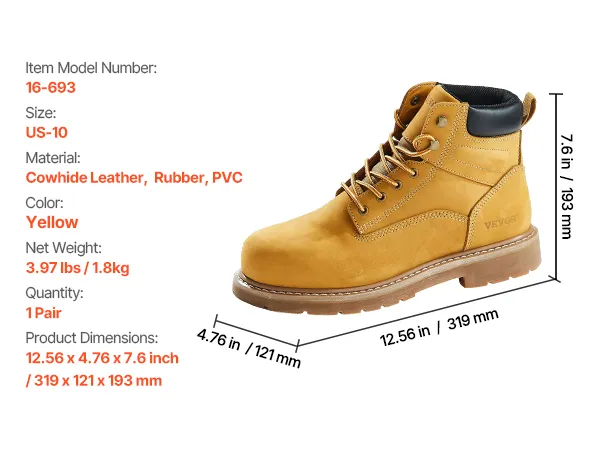 VEVOR Steel Toe Work Boots, UK Size 9, Waterproof Work Boots for Men, Slip-Resistant Work Boot, Lightweight and Breathable Rubber Sole Mens Boots for Industry Construction, Brown Yellow