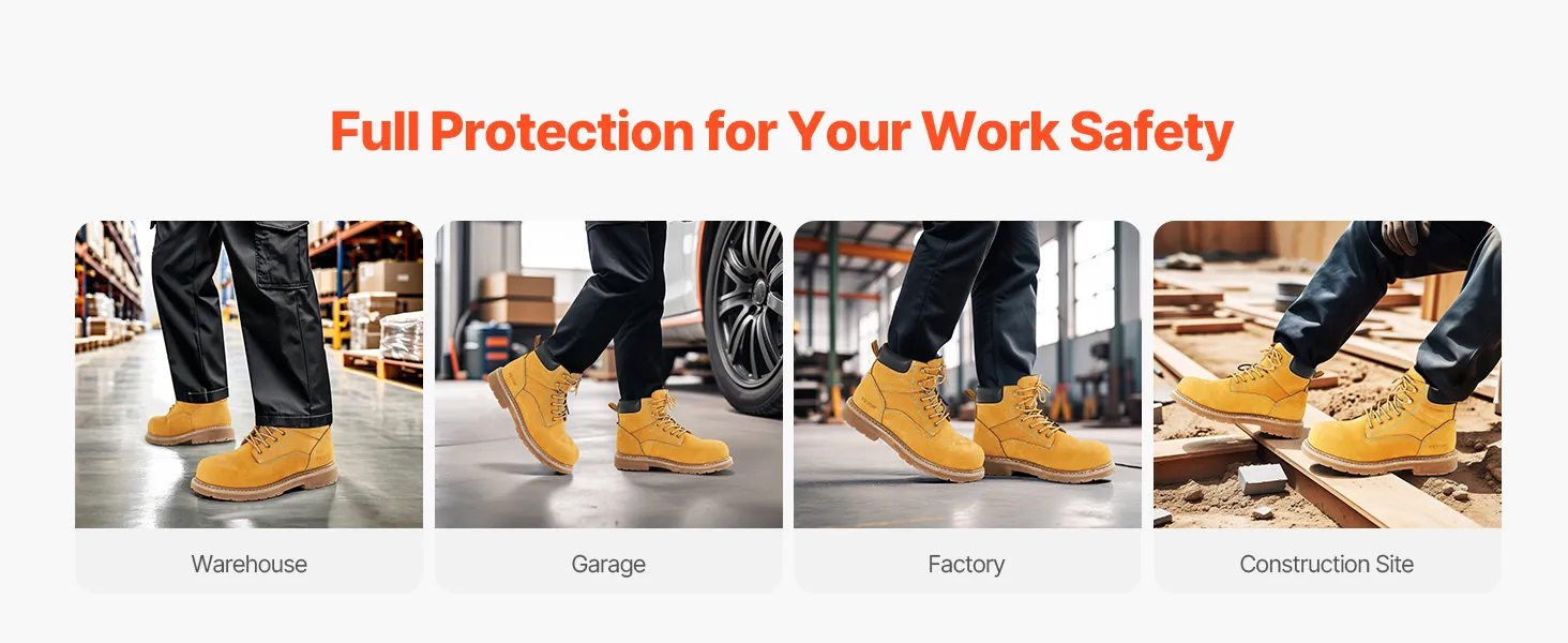 Breathable & Lightweight: These boots feature waterproof leather to keep dryness out while the breathable insoles avoid foot sweat. The soft rubber sole enhances comfort, making them ideal for workers who need to stand or walk for extended periods on construction sites.