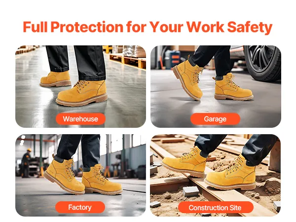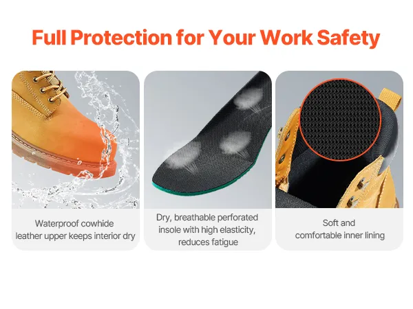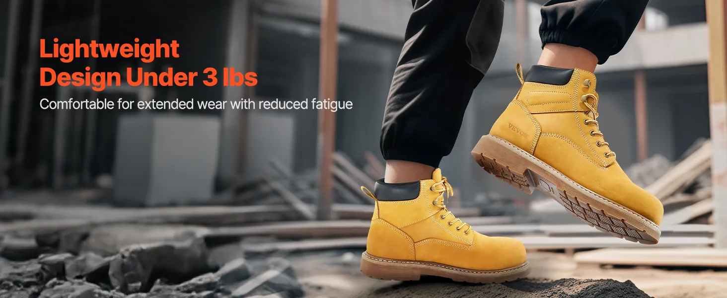 Breathable & Lightweight: These boots feature waterproof leather to keep dryness out while the breathable insoles avoid foot sweat. The soft rubber sole enhances comfort, making them ideal for workers who need to stand or walk for extended periods on construction sites.