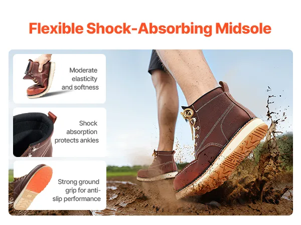 Soft & Foldable: After 30,000 bending tests on the sole and wear resistance tests, the brown work boots show no separation or deformation. You can confidently wear our boots across different construction sites without worry.
