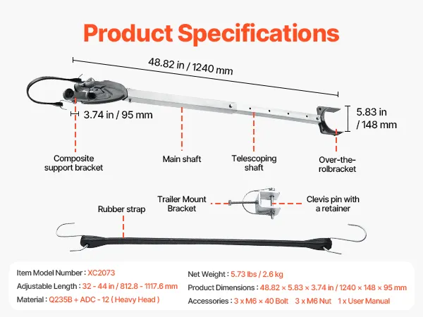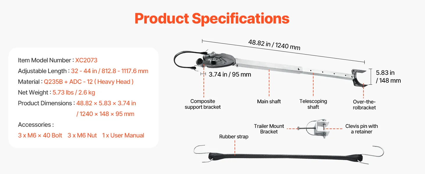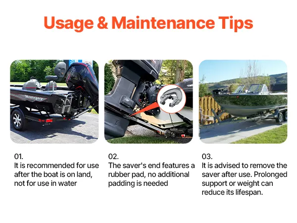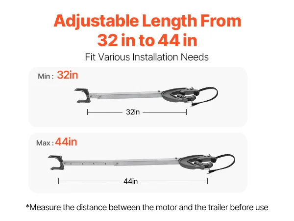 Adjustable Length: The transom saver’s length can be adjusted from 32 to 44 in, which can be used for a wide range of engine towing. Note: You can measure the distance between the engine and the trailer before use.