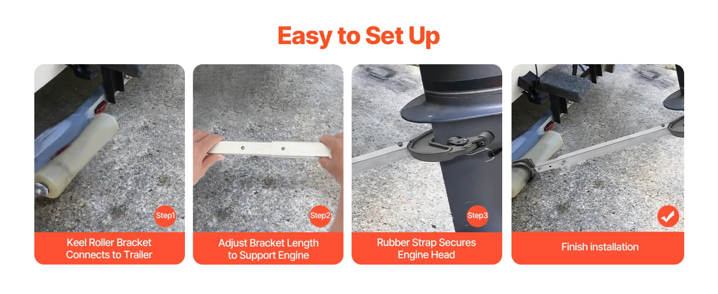 Our transom saver is designed for engines under 100HP, with a corrosion-resistant bracket. The length is adjustable from 32 to 44 in. During towing, it provides strong support for the engine, lowers pressure on the boat’s beam, and helps avoid scratches and damage.