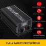 • Krachtige omvormer: levert 2000 W DC/AC en 4000 W onmiddellijk vermogen, met 1 afstandsbediening, 2 reisadapters, 1 USB-kabel en 8 zekeringen.