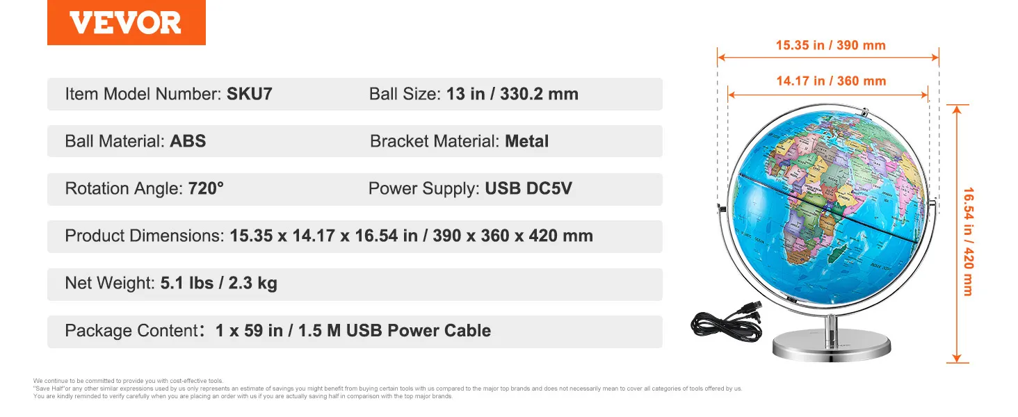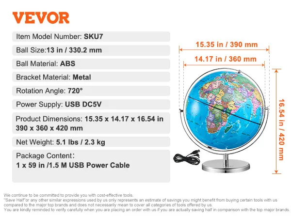 De verlichte wereldbol van VEVOR is een uniek educatief hulpmiddel. Het verandert elke kamer 's nachts in een observatorium. De wereldbol licht op om gedetailleerde sterrenbeelden te tonen. Dit maakt het ideaal om naar de sterren te kijken en meer te leren over de kosmos. U kunt het gebruiken voor sterren, studeren of het verkennen van het heelal. LED-verlichting is zacht voor de ogen. Het is dus perfect voor gebruik voor het slapengaan. Het kan ook worden gebruikt als u wilt genieten van uw avondlicht met kinderen. Er zijn duidelijke, heldere sterrenbeelden die gemakkelijk te lezen en te identificeren zijn. Dat gezegd hebbende, deze functie maakt het een leuk en educatief hulpmiddel in één aantrekkelijk pakket.