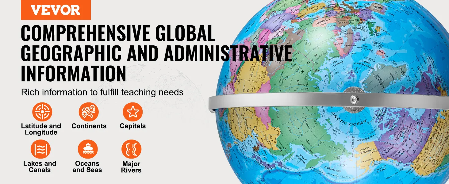De VEVOR-globe heeft een high-definition print voor uitzonderlijke helderheid. De kaarten zijn scherp, levendig en gemakkelijk te lezen. Dit maakt het gemakkelijk om landen, steden, bezienswaardigheden, naties en dorpen te identificeren met de HD-print. Het zorgt ervoor dat zelfs kleine details zichtbaar en duidelijk zijn. Daarom is dit detailniveau perfect voor educatief gebruik. Naast het verbeteren van de leerervaring voor kinderen, zorgt de nauwkeurigheid van de kaarten ervoor dat kinderen de juiste geografische informatie leren. Een print van hoge kwaliteit verbetert ook de esthetische aantrekkingskracht van de wereld.