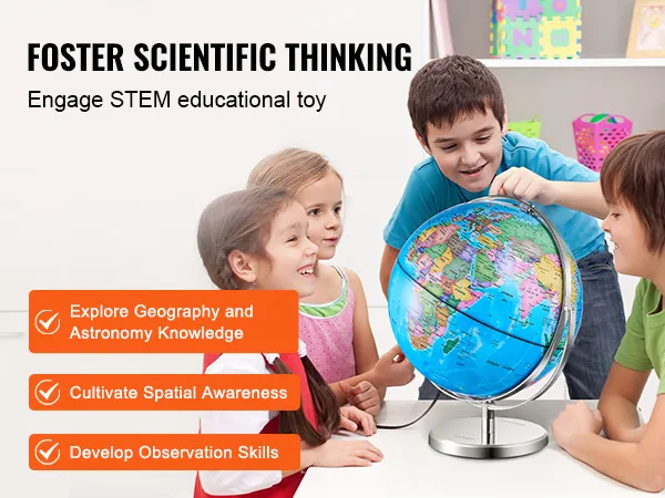 Deze globe is een veelzijdig educatief hulpmiddel voor zowel overdag als 's nachts. Het dient zowel als een educatief hulpmiddel overdag als 's avonds. De VEVOR globe fungeert overdag als een ideale globe en biedt levendige, gedetailleerde kaarten. 's Nachts wordt het een boeiend hulpmiddel om over de sterren te leren. Deze dubbele functie maakt het ongelooflijk nuttig in elke educatieve omgeving. Het moedigt kinderen zelfs aan om geografie en astronomie te ontdekken. De duidelijke en nauwkeurige kaarten helpen bij het leren over landen, oceanen en meer. Het nachtzicht helpt bij het begrijpen van de nachtelijke hemel en sterrenbeelden. Deze globe combineert geografie effectief met astrologie in één product.