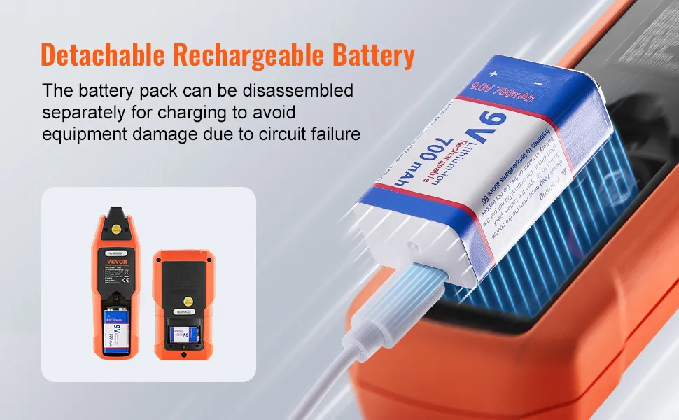Deze VEVOR ondergrondse kabelzoeker gebruikt dubbele waarschuwingen om de precisie te verbeteren. De combinatie van geluid en LCD-schermwaarschuwingen stelt u in staat om kabels nauwkeurig te traceren. Naarmate u uw doel nadert, neemt het geluid geleidelijk toe, wat zorgt voor een nauwkeurige detectie van de kabelbreuk. Dit dubbele waarschuwingssysteem maakt het traceren van kabels sneller en eenvoudiger, of u nu de kabelzoeker, breukdetectorzoeker of andere gerelateerde tools gebruikt. Met afneembare oplaadbare batterijen die ongeveer 4 uur meegaan, kunt u op deze tool vertrouwen voor langdurig gebruik tijdens al uw kabeldetectiebehoeften.