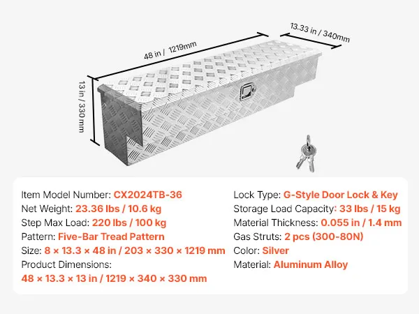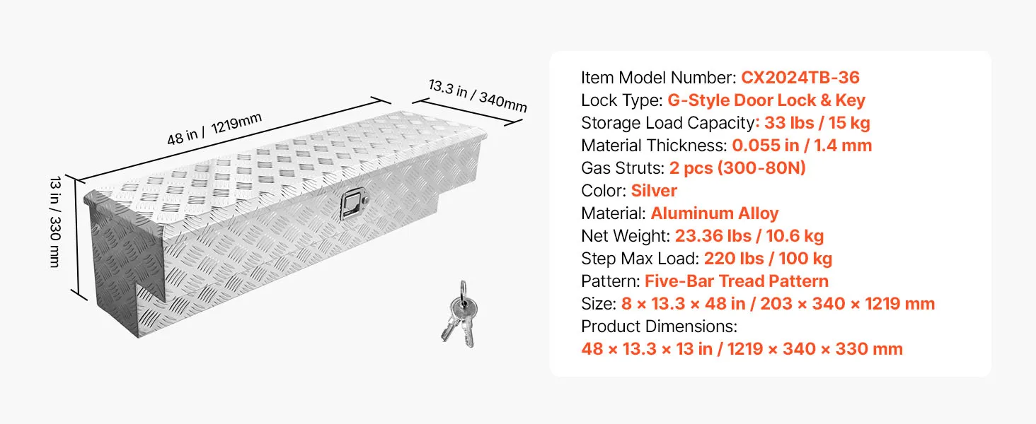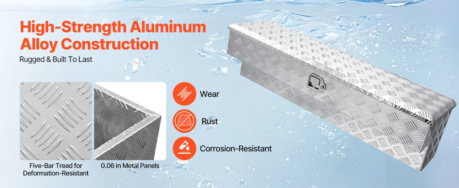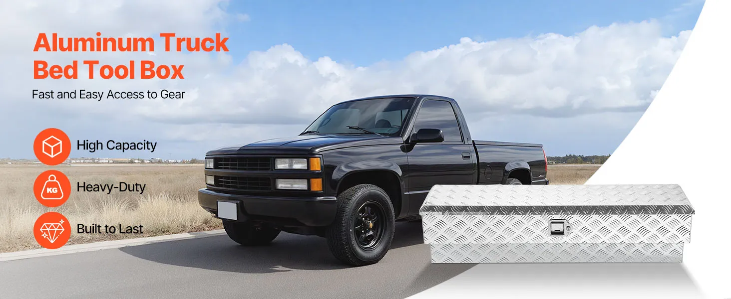 VEVOR Truck Bed Tool Box, aluminium gereedschapskist met profiel, opbergorganizer met slot en sleutel, ideaal voor pick-uptrucks, vrachtwagenbedden, campers en aanhangers, 1219 x 340 x 330 mm