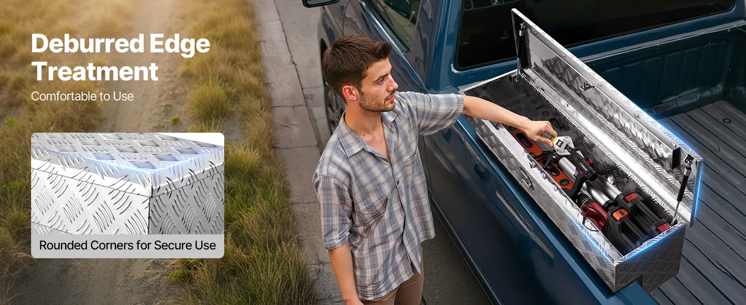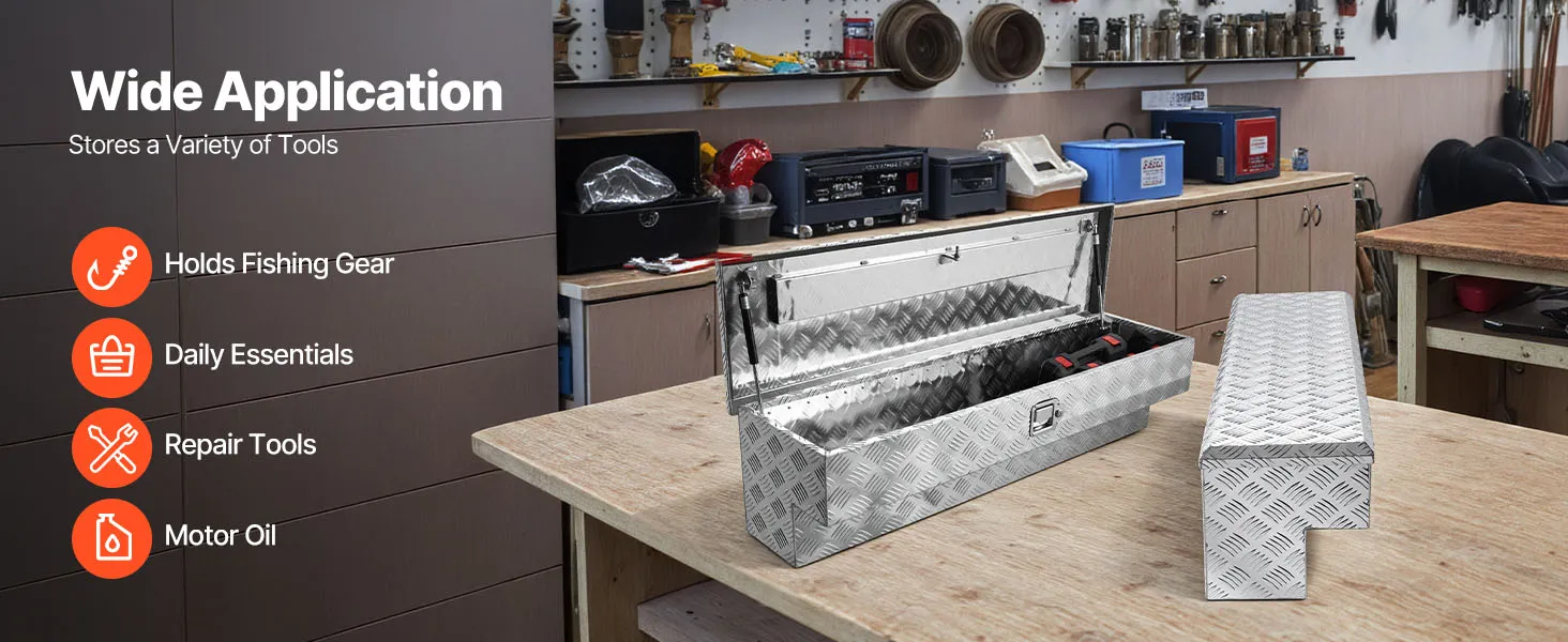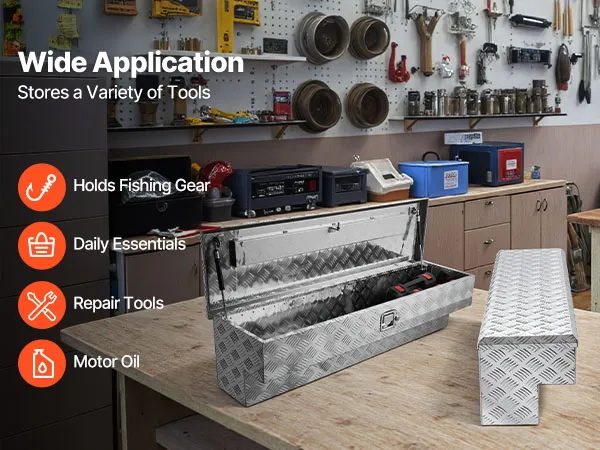 Veelzijdige toepassingen: Deze gereedschapskist voor in de vrachtwagen kan worden geïnstalleerd op pick-ups, campers, aanhangers en meer. Of het nu gaat om dagelijks vervoer, buitenavonturen of werk op locatie, hij is geschikt voor vele scenario's en houdt je gereedschap georganiseerd waar je het nodig hebt.