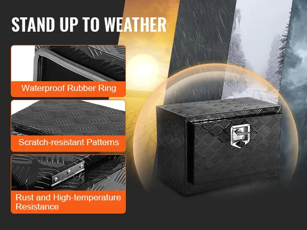 Gemaakt van dikwandige aluminiumlegering met krasbestendige oppervlaktetextuur om de duurzaamheid en hardheid effectief te verbeteren; Uitgerust met een rubberen afdichting van 360° in de gereedschapskist om spullen droog te houden.