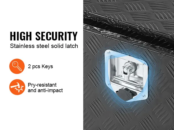 Safety Comes First: The embedded T-shaped handle of this underbody box is designed without bulge, making it resistant to scratches and hits during driving. The box is lockable and comes with two exclusive keys to ensure the security of your items. Increase your underbody storage space with this truck box and have peace of mind knowing your belongings are safe from theft.