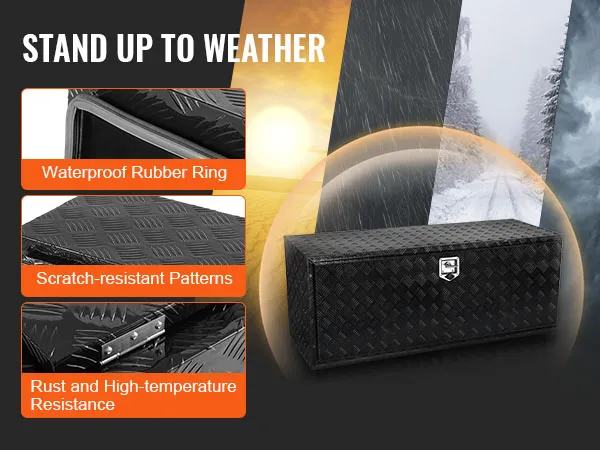 Gemaakt van dikwandige aluminiumlegering met krasbestendige oppervlaktetextuur om de duurzaamheid en hardheid effectief te verbeteren; Uitgerust met een rubberen afdichting van 360° in de gereedschapskist om spullen droog te houden.