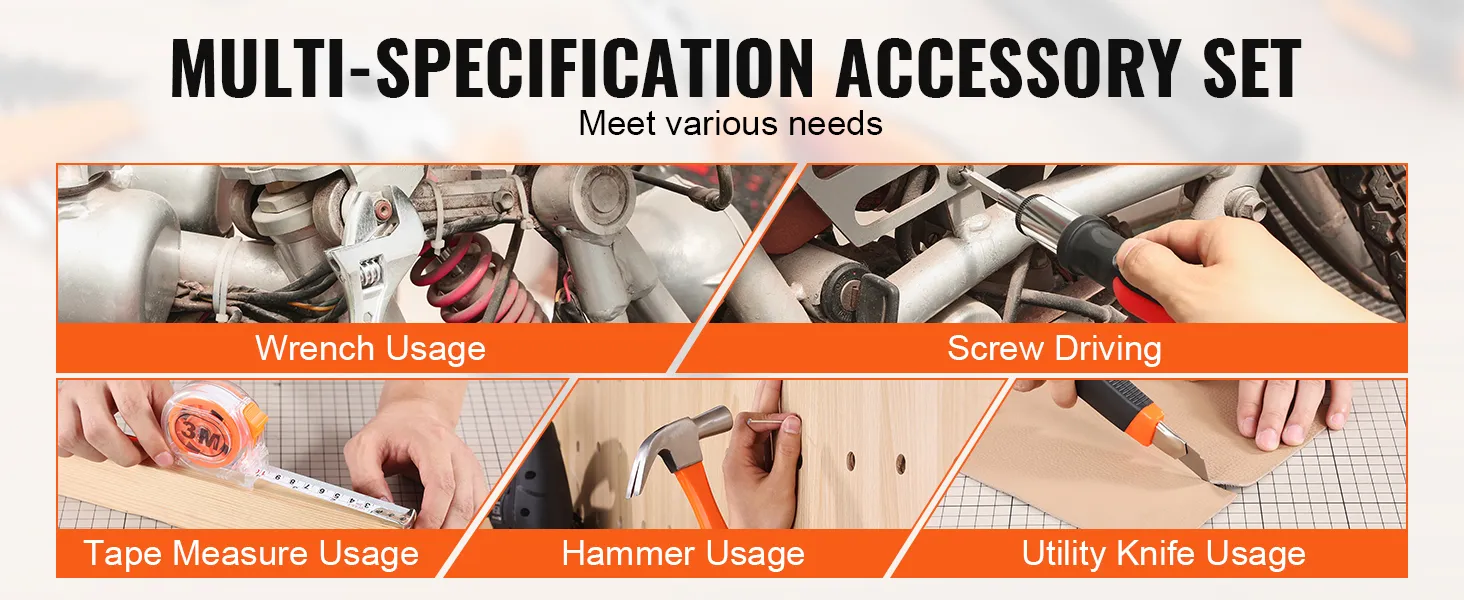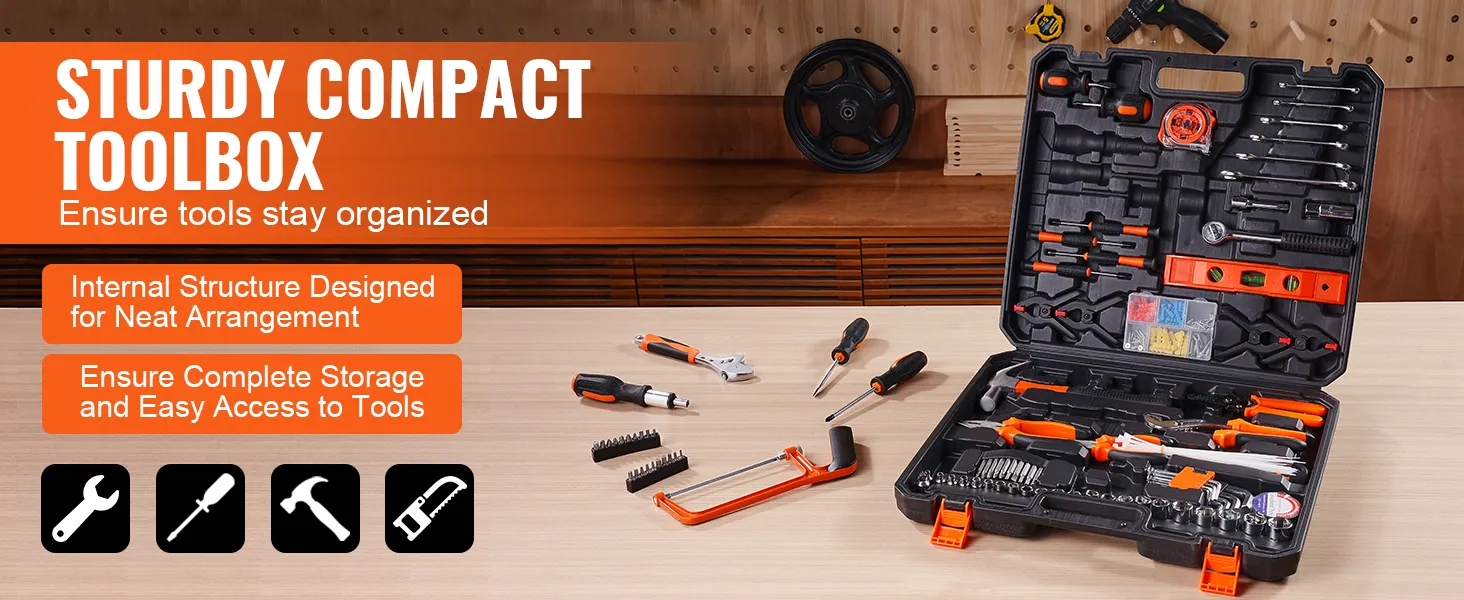 De VEVOR Tool Kit is ideaal voor verschillende reparaties aan huis en doe-het-zelfprojecten. Of u nu meubels repareert, schilderijen ophangt of een creatieve onderneming aanpakt, deze algemene huishoudelijke handgereedschapset bevat een hamer, tang, schroevendraaiers, rolmaat en moersleutel. Ontworpen voor efficiëntie en gemak, voldoet het aan de behoeften van zowel beginners als ervaren doe-het-zelvers. Met deze uitgebreide set hebt u het juiste gereedschap voor elk project, zodat taken snel en effectief worden voltooid.